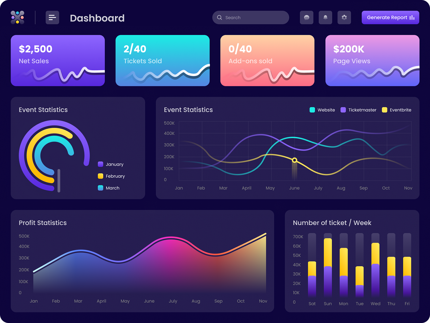 Created an interactive dashboard UI for a SaaS platform using card-based design and a dark theme. Focused on clarity of metrics, custom charts, and intuitive navigation for power users across devices.